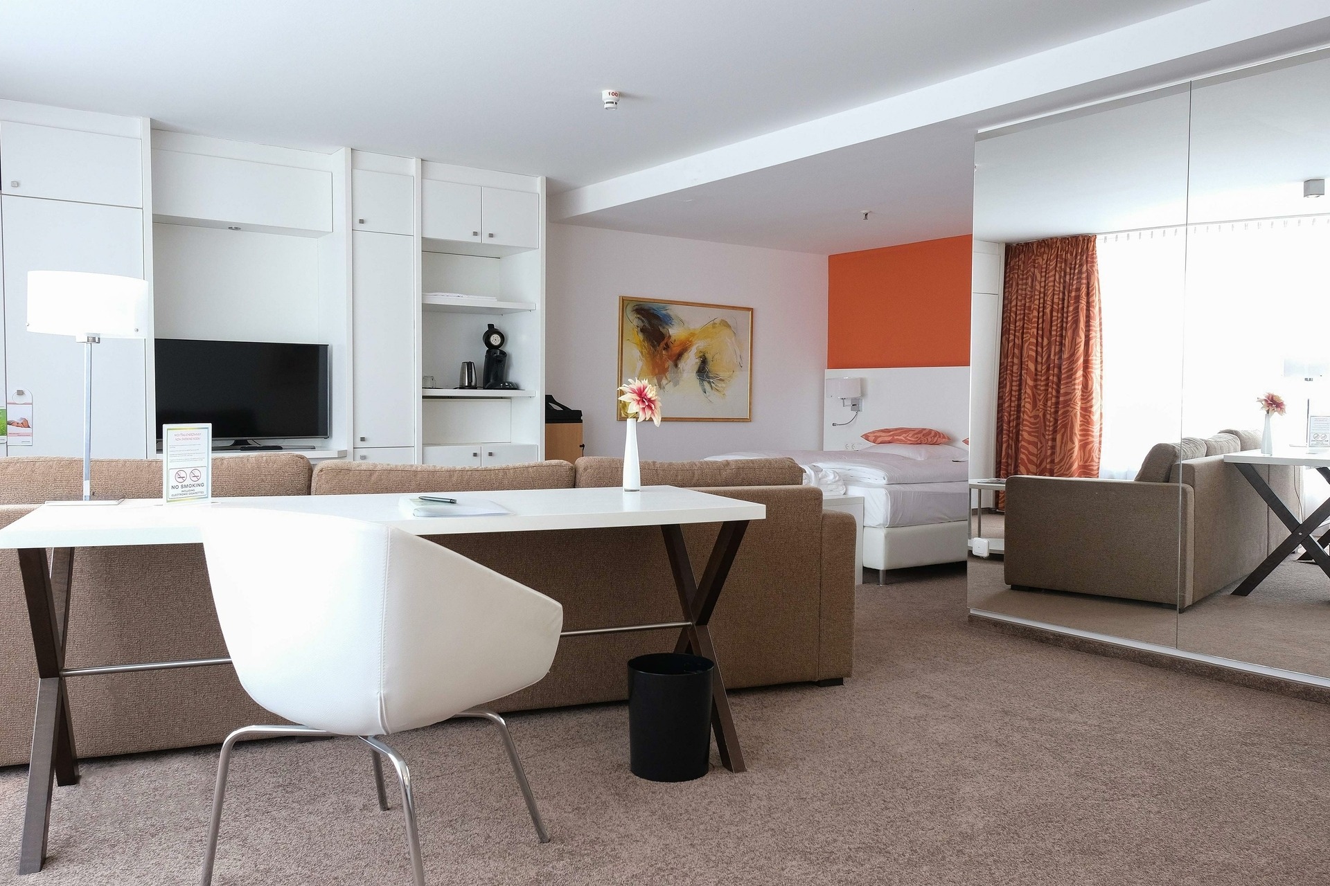 The relexa hotel Frankfurt/Main has 163 no smoking rooms including 98 standard rooms, 24 standard twin rooms, 30 business rooms, 6 studio apartments and 5 suites, which include 1 suite for disabled people.